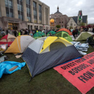 Over the course of several hours, campus leaders engaged with those protesting on Library Mall, asking them to remove the illegal tent encampment, giving printed warnings, and offering to meet with protest organizers once the tents were removed from campus grounds.